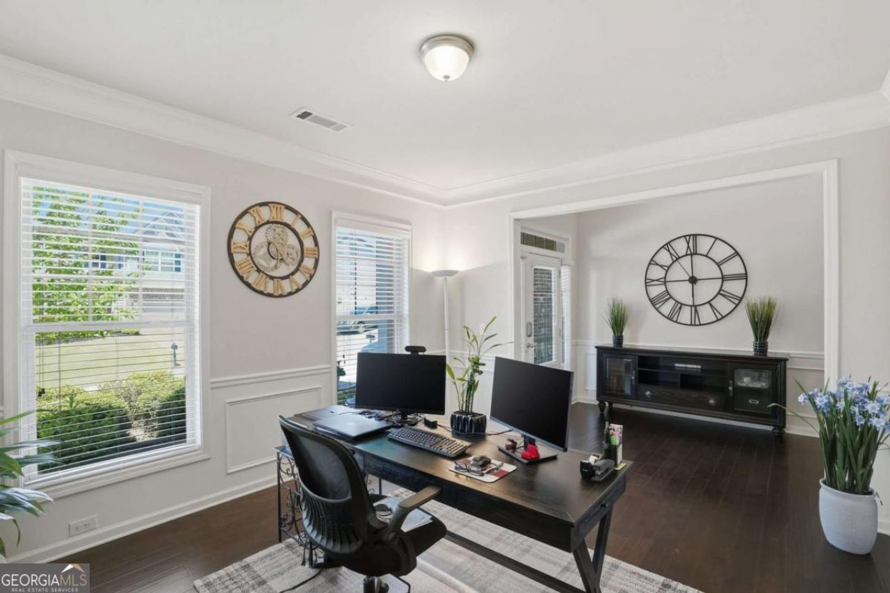 Charming brick-and-siding home with access to regional trails, ideally located in the sought-after Highlands at Sawnee Mountain within the award-winning Forsyth County school district-just minutes from Cumming City Center dining and entertainment. Lovingly maintained by the original owner, this home showcases thoughtful upgrades including hardwood floors throughout the main level, granite countertops in the kitchen and all three bathrooms, a covered patio, and a private covered deck off the primary suite-perfect for enjoying serene backyard views. Designed for both everyday living and entertaining, the open-concept main level features a bright kitchen that flows seamlessly into the breakfast area and fireside family room. The kitchen is equipped with a breakfast bar, stainless steel appliances, double ovens, gas range, and a walk-in pantry. The great room overlooks the walk-out, fenced backyard, creating an easy indoor-outdoor connection. Upstairs, the spacious primary suite offers a large walk-in closet and a spa-like bath with soaking tub, separate shower, and dual vanities. A conveniently located upper-level laundry room adds everyday ease. Two additional bedrooms, a full bath, and a versatile bonus room-ideal for an office, playroom, or fitness space-complete the upper level. Situated on one of the larger lots in the community, the level, fenced backyard extends to wooded views beyond the property line, offering both privacy and a natural setting-with no future development behind the home, as the land is part of the protected Big Creek Greenway preserve. A programmable irrigation system services the entire yard, enhancing ease of maintenance. Additional recent updates include a freshly painted exterior (April 2026) and a new water heater (January 2026). Enjoy peaceful surroundings with convenient access to nearby trails, including the Big Creek Greenway.